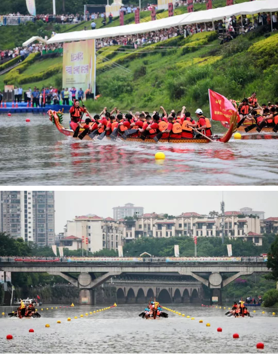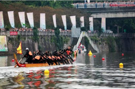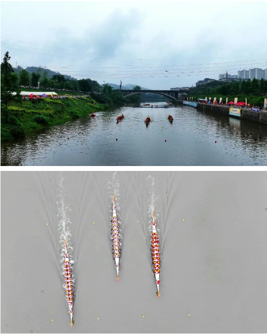 6月1日,重庆三峡银行杯“千年荣昌·龙舟争渡”端午龙舟赛决赛在濑溪河礼悦东方段-联升桥河段举行,一艘艘龙舟飞桨逐浪,共庆端午佳节。