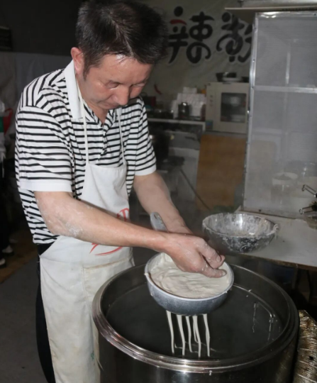 店不大,仅六张桌子,全年除了家中有事,连春节也不歇业。李诗全说:“顾客来了吃不到会不高兴。”为了顾客一句“能吃到”,夫妻俩把日子过得满是章法——妻子郭金萍一早去菜市场挑选新鲜食材,回来一起手工制作红薯粉。两人在年复一年的相伴中淬炼得炉火纯青,很快便完成了准备工作。