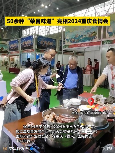 荣昌猪、荣昌卤鹅、荣昌粉条等50余种荣昌特色展品亮相博览会,向国内外客商推介“荣昌味道”。