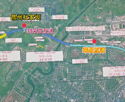 根据规划,荣昌两个互通也将进行移位改建,分别是荣昌互通向四川方向改移约3公里,荣昌东互通向重庆方向改移约2.5公里,预计2028年建成通车。
