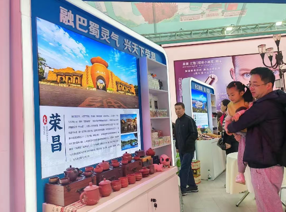 荣昌区文化旅游委组织重庆臻品文化旅游有限责任公司参展,现场集中展示展销“荣昌陶、荣昌夏布、荣昌折扇”文创产品及特色商品,并发放景区宣传资料超300份,扩大“千年荣昌”知名度和美誉度。