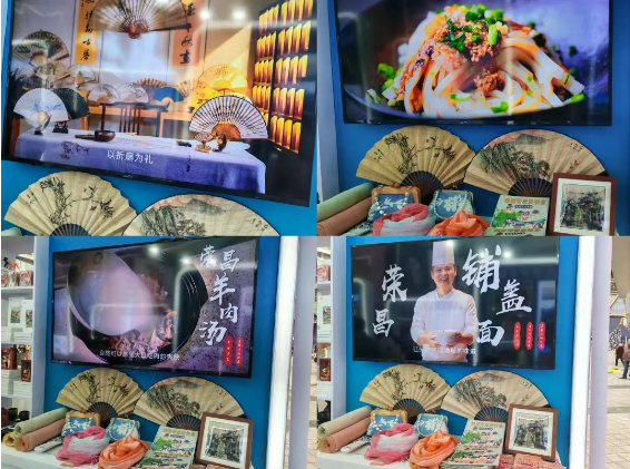 川南渝西文旅融合发展联盟展馆内,循环播放荣昌区文旅宣传片和美食创意短视频,向市民和游客宣传展示荣昌深厚的历史文化底蕴和丰富的非遗资源,吸引众多市民驻足观看。