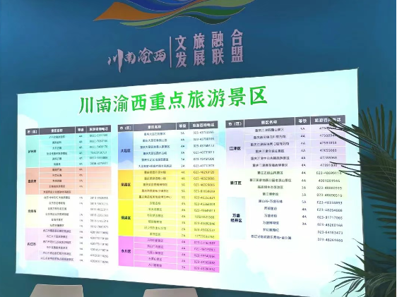 现场还展示了川南渝西的60余个重点旅游景区资源,诚邀广大游客前来“打卡”。同时,还发布了川南渝西精品旅游线路,串联起了11市区代表性景区。2025年,川南渝西文旅融合发展联盟将继续秉持合作共赢理念,推动成渝地区双城经济圈建设、助力巴蜀文化旅游走廊建设,推动区域文旅产业高质量发展。