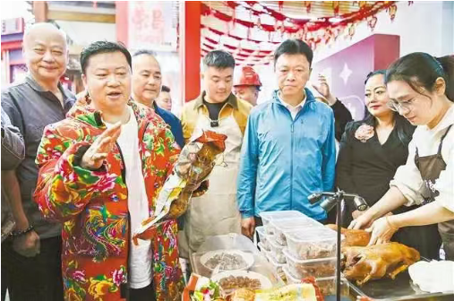 近日,在渝味360碗陶然居国潮美食街区的荣昌馆门口,荣昌区委书记高洪波携“卤鹅哥”开启了一场“色香味俱全”的美食推介直播,向网友们推荐重庆特色美食,吸引近500万网友在线观看、互动。