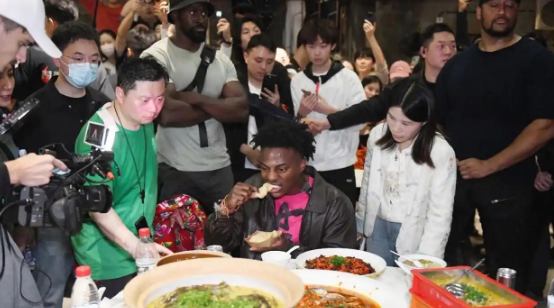 ▲美国网红“甲亢哥”现身重庆。(中新社记者何蓬磊摄)