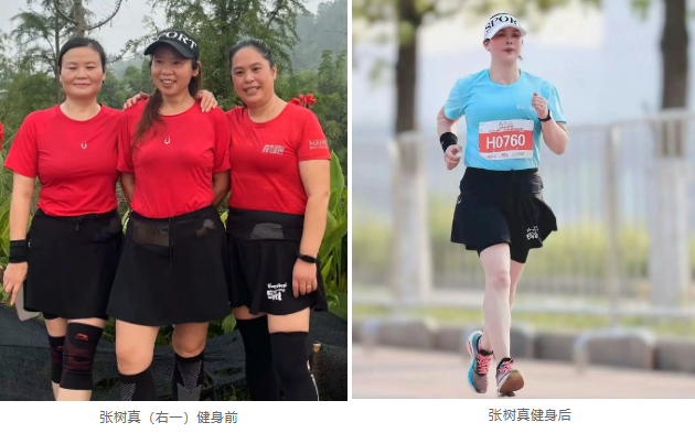 同样面临肥胖困扰的,还有50岁的张树真。和唐建华相比,她参与健身跑步的时间更早。两年前,身高158cm的张树真,体重达到75kg,“三高”也随之而来,需要吃药控制。