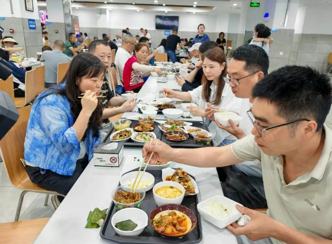 荣昌区机关事务管理中心主任雷霞介绍,端午节恰逢六一儿童节,荣昌区政府机关食堂特别为亲子家庭准备了专属福利,推出61元的“六一”家庭套餐,在原有的荣昌卤鹅、黄凉粉等特色菜品上,新增了粽子和儿童喜欢的薯条、鸡腿、鸡块等特色小吃,让家长和孩子在品尝美食的同时,共享温馨的亲子时光,感受舌尖上的荣昌魅力。