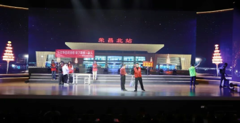 一个个贴近生活、饱含深情的节目接续登场。情景剧《你好小店》《温暖之约》聚焦基层服务与民生故事,生动还原荣昌干部群众的日常奋斗;少儿舞蹈《鹅鹅鹅》以童真舞姿萌动全场;歌伴舞《海棠绽放》将荣昌“海棠香国”的美誉融入歌舞,尽显本土风情;工业产品走秀《我家产品我来秀》展示了小刀新能源等本土企业的特色产品,彰显区域产业活力;童声表演唱《谁不说俺家乡好》、表演唱《幸福的社区食堂》,从不同视角呈现荣昌民生改善的成果;舞蹈《珊瑚颂》、歌舞《我们的祖国是花园》等节目,以嘹亮歌声传递家国情怀。