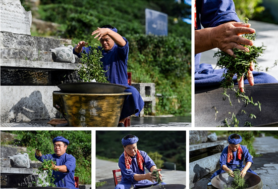 ▲国家级非物质文化遗产都匀毛尖茶制作技艺代表性传承人张子全炒制都匀毛尖。(黔南州农业农村局供图)