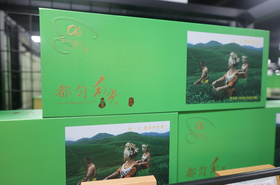 ▲包装成盒,正准备走向世界各地的都匀毛尖。(陈一诺/摄)