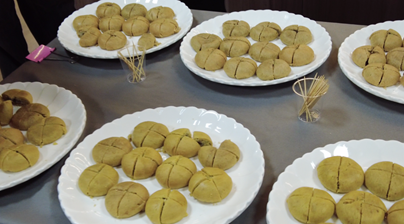 ▲都匀毛尖茶产业发展(集团)有限公司制作的茶饼糕点。(李紫薇/摄)