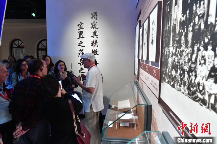 ▲10月28日,在福州马尾的中国船政文化博物馆内,丹麦汉学家、丹麦前驻上海总领事曹伯义向来自巴西、美国、伊朗、格鲁吉亚等国的汉学家介绍陈季同。中新社记者张斌 摄