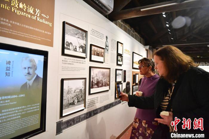 ▲10月28日,多国汉学家在福州鼓岭万国公益社参观,了解福州“鼓岭故事”。中新社记者张斌 摄