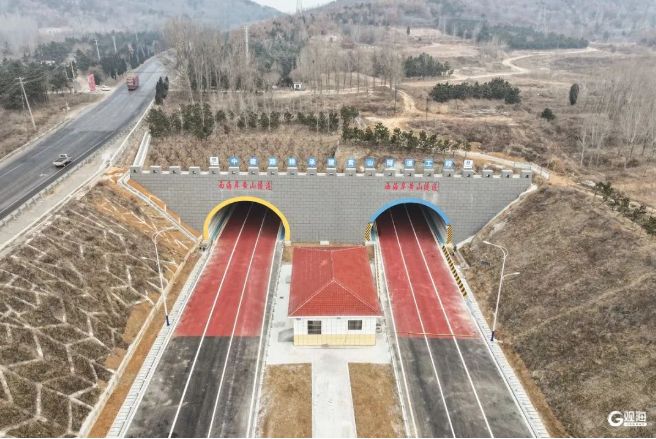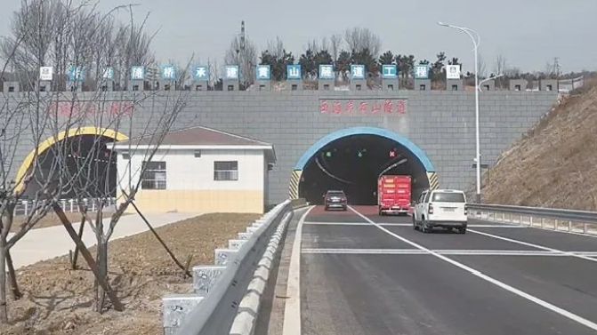 1月18日,下穿齐长城遗址、东临青盐铁路的西海岸黄山隧道建成通车。