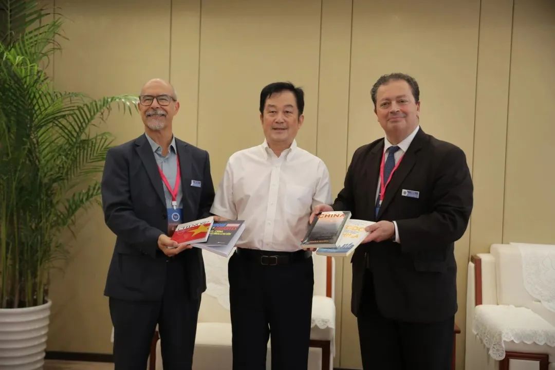 同时,来自埃及爱资哈尔大学语言与翻译学院中文系的阿齐兹主任,来自印度尼西亚总统大学基金会监事会的黄金泉主席,以及来自尼泊尔阿尼哥协会的萨尔波塔姆·什雷斯塔副主席,来自斯里兰卡科伦坡大学斯里帕利校区大众传媒系的马欣达主任,来自哈萨克斯坦总统战略研究所首席科学家阿迪力博士,来自北京外国语大学亚非学院泰语研究室的谢玉冰教授,来自维也纳大学、西南大学的德国汉学家项佳谷教授,来自伊朗德黑兰大学中文系的好麦特主任,来自约旦侯赛因·本·塔拉勒大学艺术学院媒体与战略研究系的哈桑教授,来自土耳其安卡拉大学东方语言与文学系的吉来教授,及来自法国国立东方语言文化学院的何碧玉教授与法国波尔多蒙田大学东亚文化研究中心安必诺主任等汉学家们把多部著作和学术结晶成果赠与了汉学中心。
