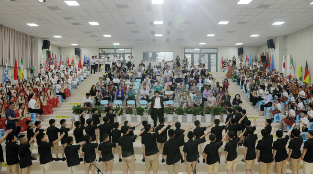 在“音乐无国界”中国民族音乐教育交流展示环节,香江路第二小学的小凤凰民乐团和黑蚂蚁合唱团的成员们化身“中外人文交流使者”,用《茉莉花》《春江花月夜》《赛马》《步步高》《金蛇狂舞》《十面埋伏》《追寻》等中华传统音乐,让汉学家们了解中国,感知中国文化。