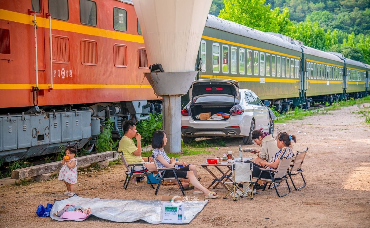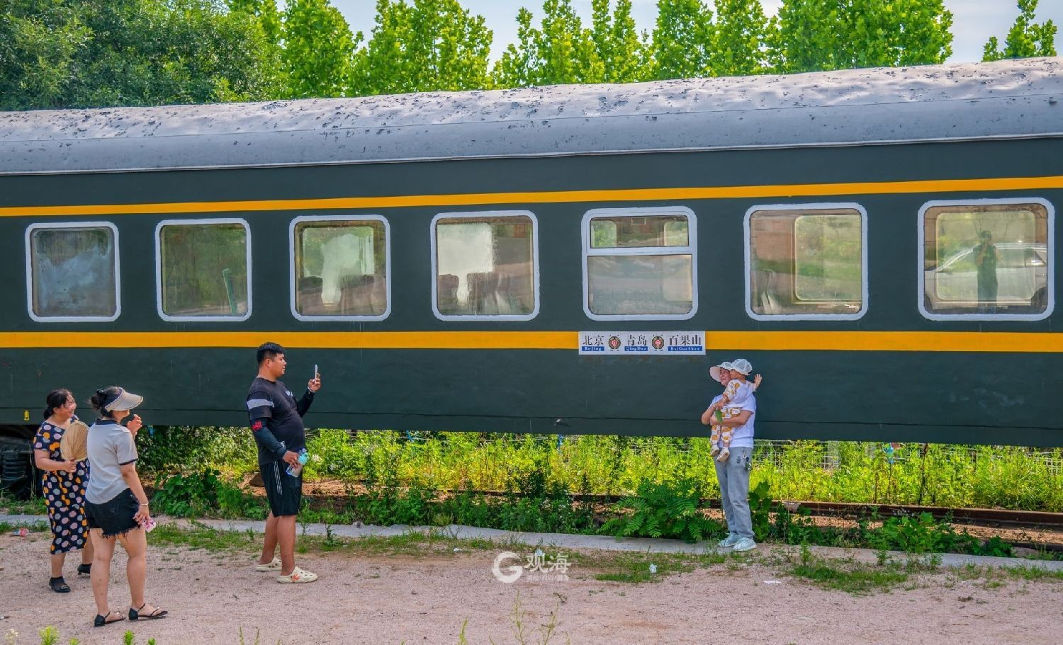 橘红色的车头、深绿色的车厢、苍翠的公园……近日,青岛百果山森林公园西侧空地上停放的一列绿皮火车吸引了众多年轻人到此拍照“打卡”。该火车由车头和4节车厢组成,不少年轻人在此露营或拍照,感受绿皮火车带来的年代感。(青岛日报/观海新闻记者杨志文)
