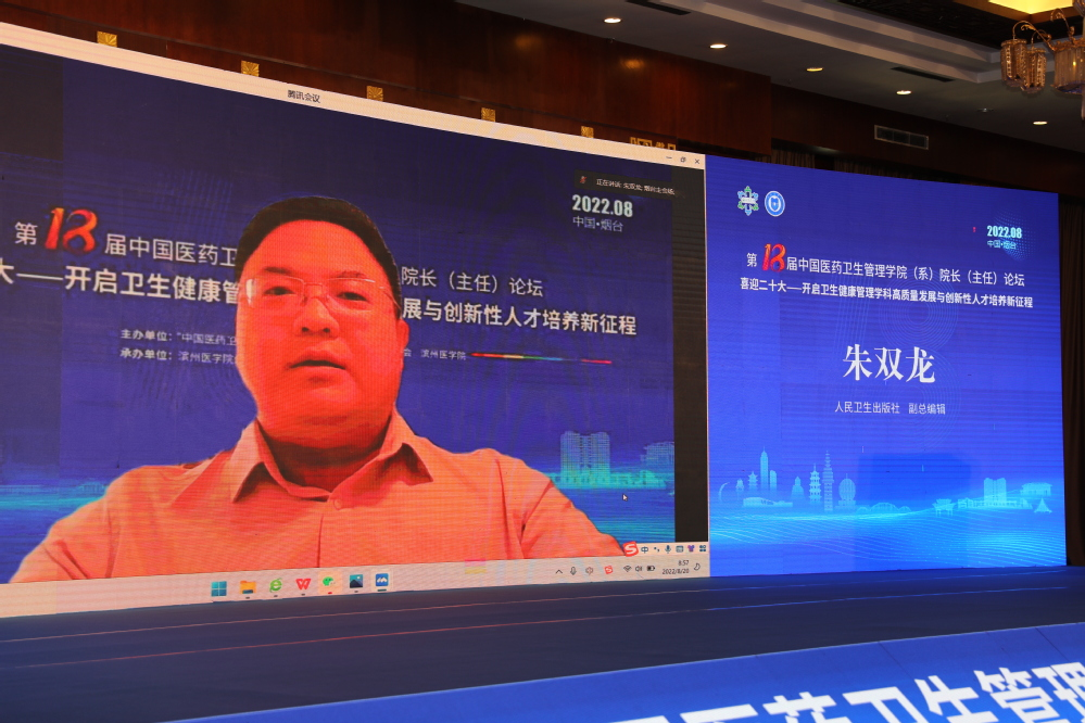 滨州医学院院长赵升田教授,人民卫生出版社副总编辑朱双龙,中国医药卫生管理学院院长论坛组委会召集人、武汉大学教授张亮分别在论坛开幕式上致辞。滨州医学院副院长王广成教授主持开幕式。