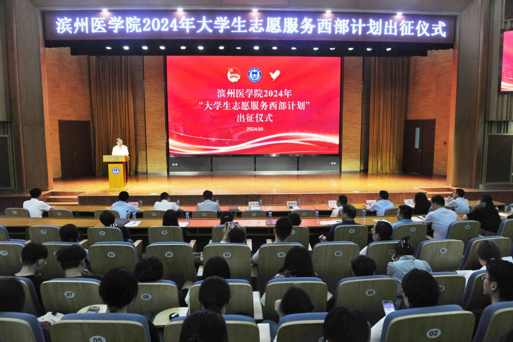 孙祥军代表学校党委向积极投身新时代西部大开发的同学们致以亲切的问候!他说,志愿服务西部计划是一项崇高而伟大的事业,需要一批又一批的热血青年奉献青春和才智,在伟大新征程中建功立业。希望即将奔赴祖国各地基层服务的同学们,胸怀“国之大者”,传承滨医“仁心妙术”的校训精神,在西部磨砺中长才干、壮筋骨、察实情、获真知。一要锚定“青春大方向”,时刻牢记习近平总书记的谆谆教导,扎根基层、脚踏实地,在学习实践中“立志气”,将个人“小目标”融入强国建设、民族复兴的“大蓝图”,用实际行动展现新时代青年志愿者风采;二要站稳“青春起跑线”,严于律己、慎独慎微,在志愿服务中“树正气”,把磨砺转化为奋斗路上的“动能”,练就善于攻坚克难的真本领,在服务实际岗位中磨炼本领、增长才干;三要跑出“青春加速度”,勇于担当,戒骄戒躁,沉下心、俯下身、扎下根,以实际行动来践行志愿服务的光荣使命,努力创造无愧于党、无愧于人民、无愧于时代的业绩。学校将持续关心、支持参加西部计划的同学们。母校永远是同学们最忠实的守望者,期待大家凯旋归来!