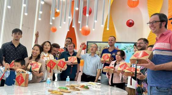 9月28日,在山东烟台巧媳妇爱缇慕工坊,“中外文化交流面对面”中秋活动举办。数十名外国友人及中外婚姻家庭成员一起学做五仁月饼、体验传统技艺,感受中秋“团圆味”。