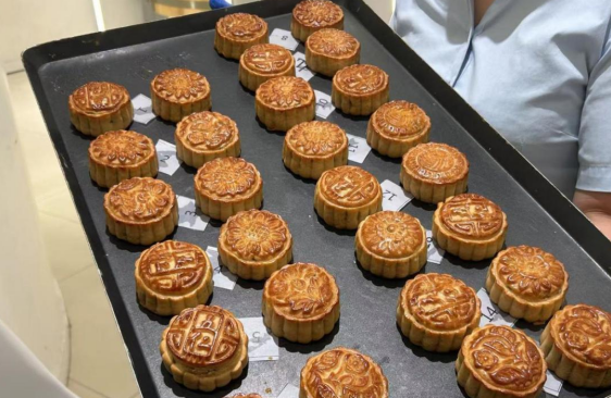 外国友人们跟着模仿,亲手体验了搓皮、包馅、压模、脱模等完整工序。不少学员还发挥创意,制作出星形、爱心形等造型新颖的月饼,为传统中秋美食增添了别样趣味。