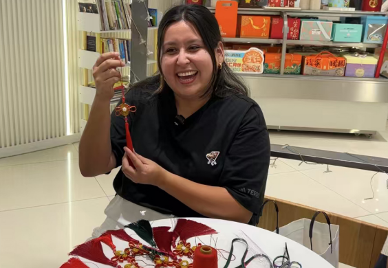 “第一次知道中国的扣子能这么美,非常奇妙。”Connie举着做好的盘扣,忍不住对着光看了又看,“中秋节学这些,就像给这个节日添了件特别的礼物。”