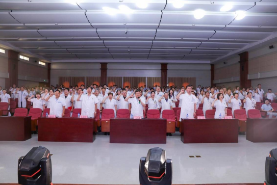 宋西成代表院党委和领导班子,向全院医师同仁致以崇高敬意与节日祝福。他指出,“德”与“技”是医者的双翼,更是立身之本。在人工智能飞速发展的今天,医务工作者的人文关怀、伦理自觉和情感温度更显珍贵。他就新时代医者使命提出三点寄语:一是以“德”为生命底色,强调医德是“见病更见人”的共情与温度,是“功成不必在我,功成必定有我”的胸怀与担当。唯有以德润医,医学事业才能薪火相传;二是以“技”为终身追求,提出医学进步永无止境,需树立终身学习理念,医院将持续搭建创新平台,推动科主任、高年资医师与青年医师传帮带共进,让技术传承闪耀人文光辉;三是以“爱”温暖医路,患者不仅需要精湛医术,更需要被看见、被理解、被温暖,做一名心怀善念、心中有爱的医者,让白大褂成为照亮生命的一束光。他勉励全体医务工作者秉承“求知、求实、求精”的院训,弘扬“精诚、创新、超越”的医院精神,努力成为守护生命健康的忠诚卫士,争做有温度、有担当、有本领的新时代医者。