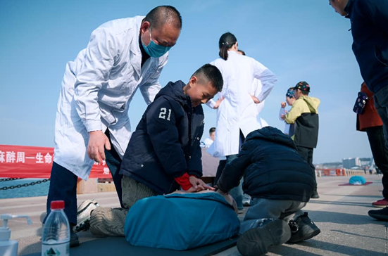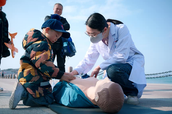 “希望通过我们手把手的教学,让更多的市民掌握这些救命的技巧,在危急时刻让人人会急救成为现实,为生命多争取一份希望。”烟台毓璜顶医院麻醉科副主任杜娟表示。