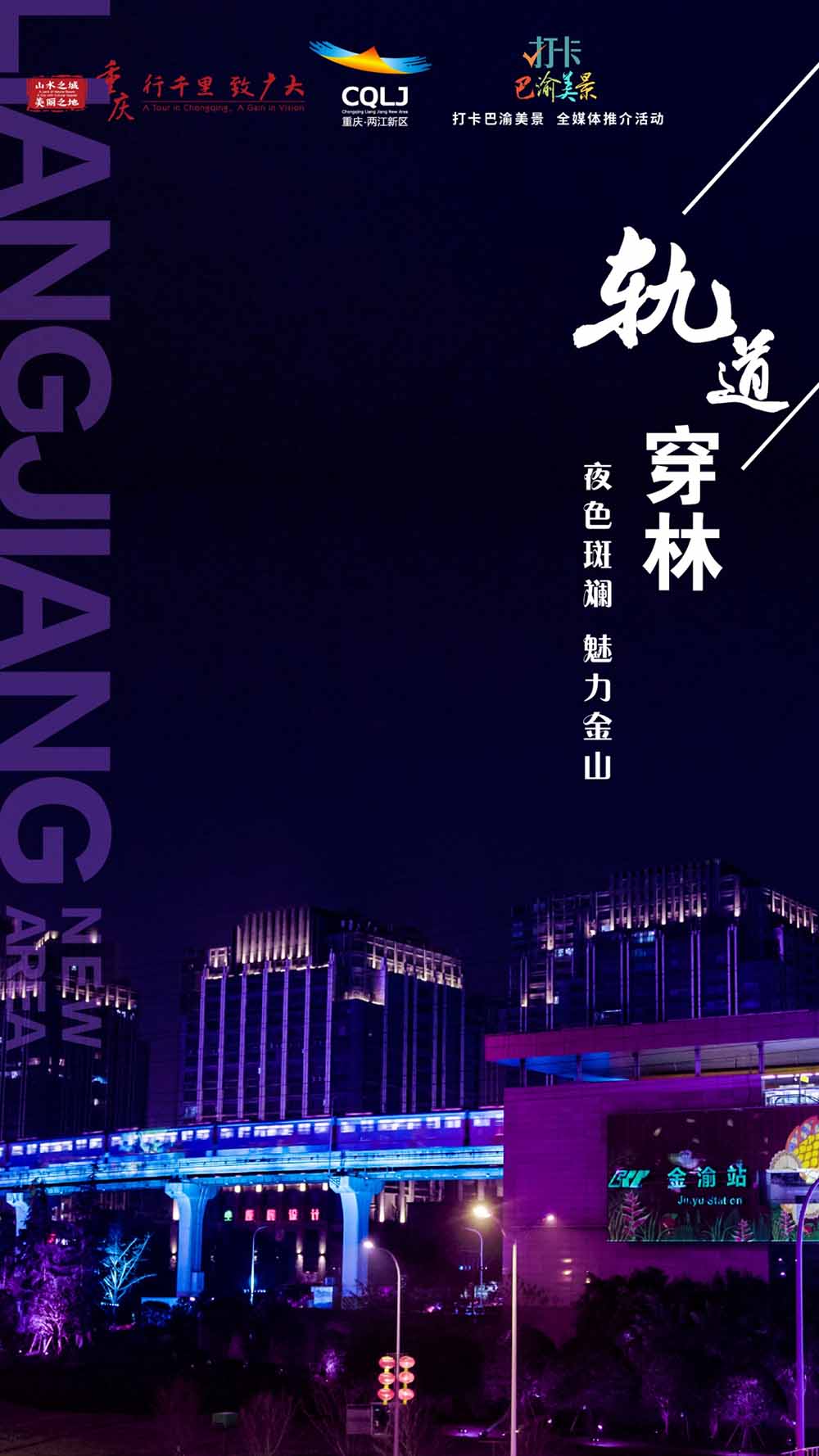 夜幕降临,华灯初上,列车驶入轨道交通3号线金渝站。光与影的流动,编织出了一个梦幻的“重庆森林”,夜晚的两江散发着迷人魅力。