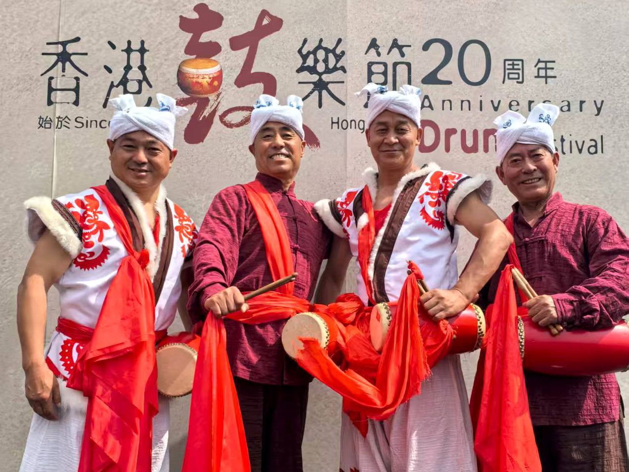 ▲2023年10月,刘延河(右一)在香港参加“香港鼓乐节”20周年庆祝活动。(图片来自中新网)