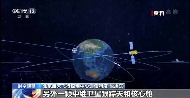 北京航天飞行控制中心通信调度原旭东:一颗天链中继卫星跟踪问天实验舱,另外一颗中继卫星跟踪天和核心舱,两个跟踪弧段是有交叠的,首先问天实验舱进行图像话音的下传,然后在中间两个星的搭接弧段,我们择机进行图像话音的切换。