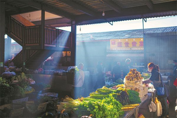 ▲Zhongyi Market in Lijiang, Yunnan province, sells fresh fruits and a variety of wild vegetables. (China Daily)