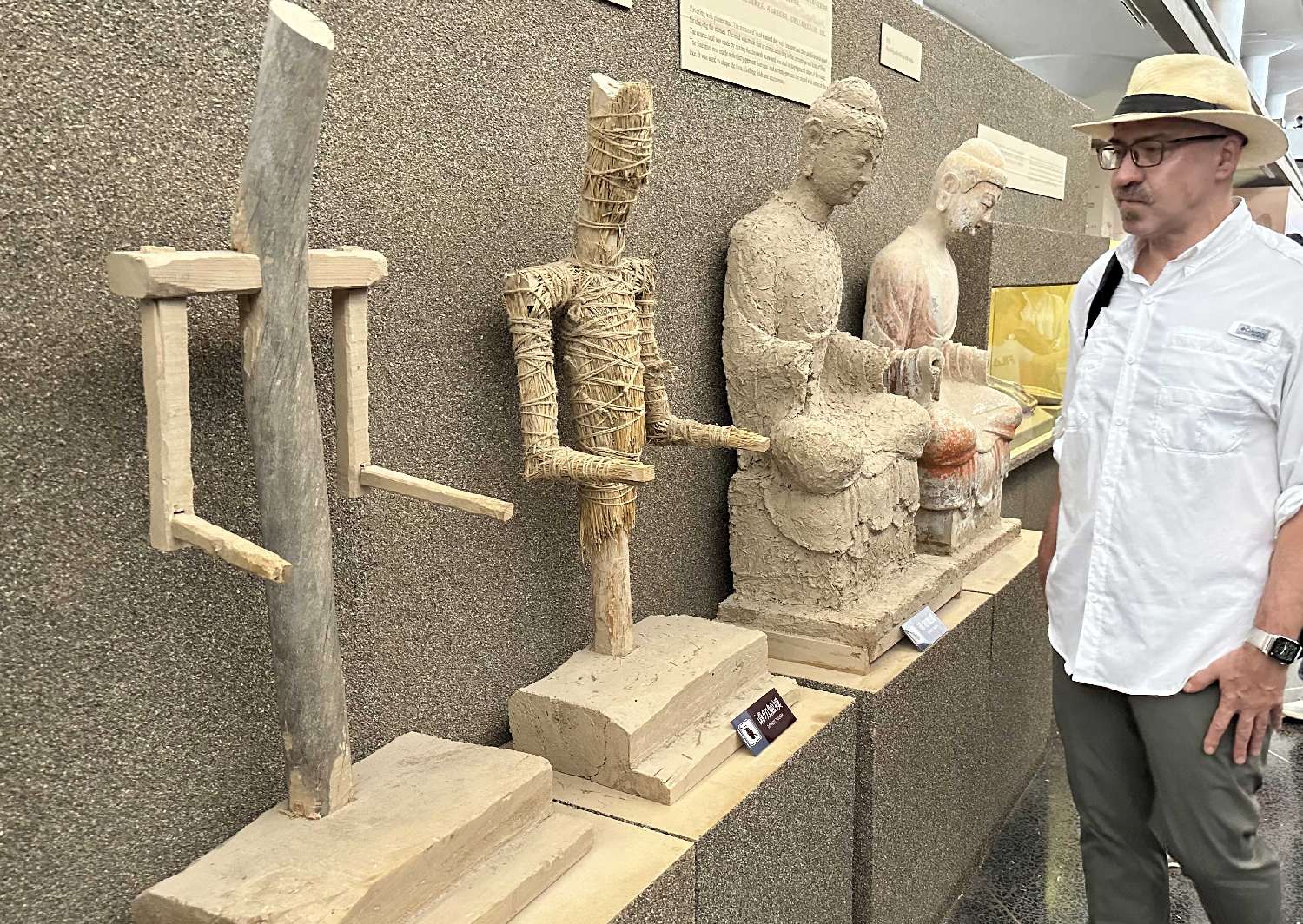 ▲2025年8月8日,史瀚文在敦煌石窟文物保护研究陈列中心研究彩塑的制作过程。中新社记者冯志军 摄