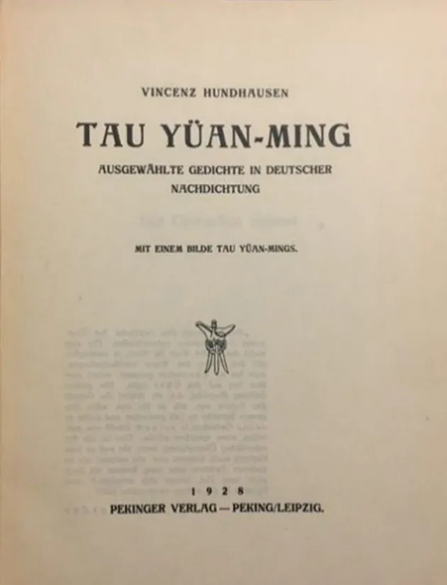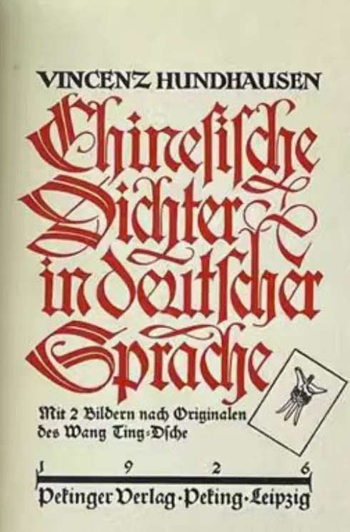 洪涛生(VincenzHundhausen,1878—1955),德国汉学家与诗人。1878年,他出生于北莱茵-威斯特法伦州的布勒雯布罗瓦赫市。1923年,他以律师身份来到中国后,转而从教治文,一边在北京大学德文系教授德国语言与文学类课程,一边从事中国古典文学,尤其是戏曲的译介。