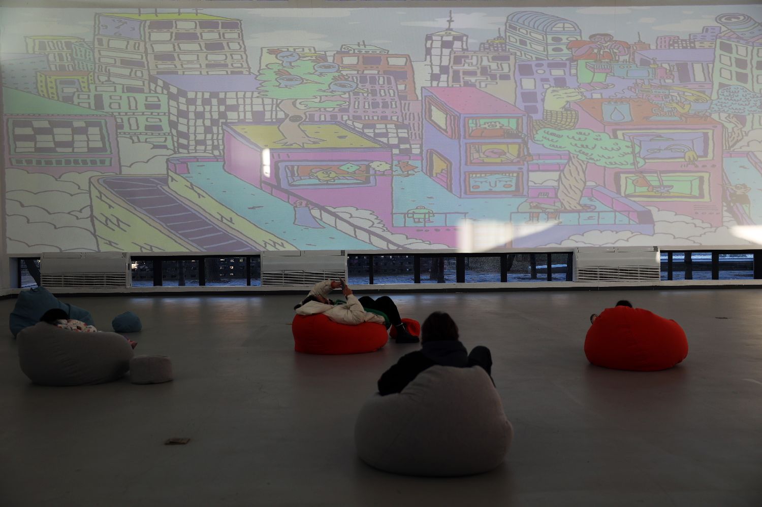 ▲14日,展厅现场正在放映匈牙利视觉艺术家劳·丹尼尔的动画作品。