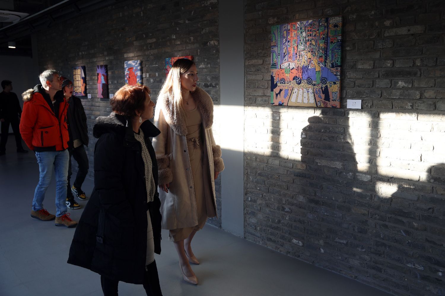 在名为《焦虑的人们》的画作中,街头艺术感十足,不仅吸引着中国观众探究的目光,来自匈牙利的两位观众也驻足讨论了许久,“这和布达佩斯的街道很相像,尤其是街道旁画着的大型海报。”