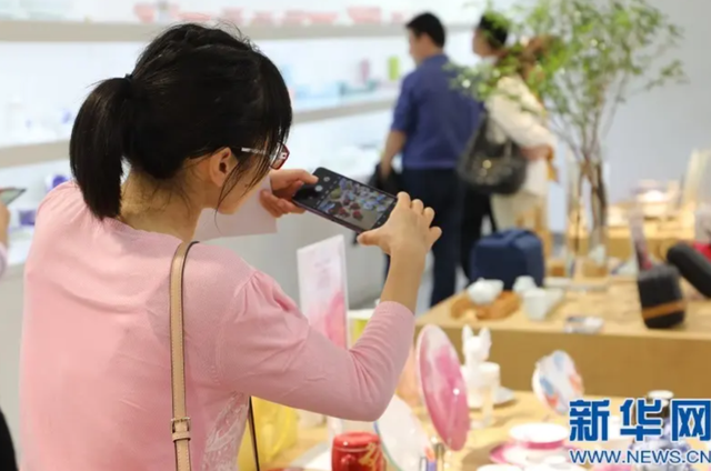 ▲员工通过手机直播的形式推销家具。新华社记者 胡晨欢 摄