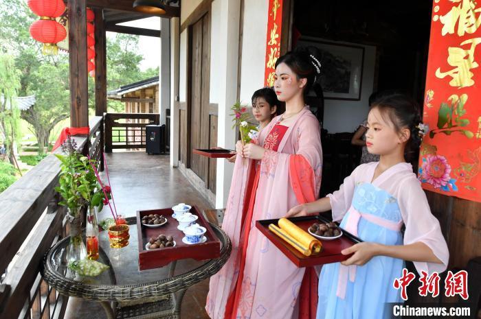 ▲身着汉服的姑娘们展现了属于七夕最传统的节日文化内容——祭星乞巧。(中新社资料图片 刘可耕摄)