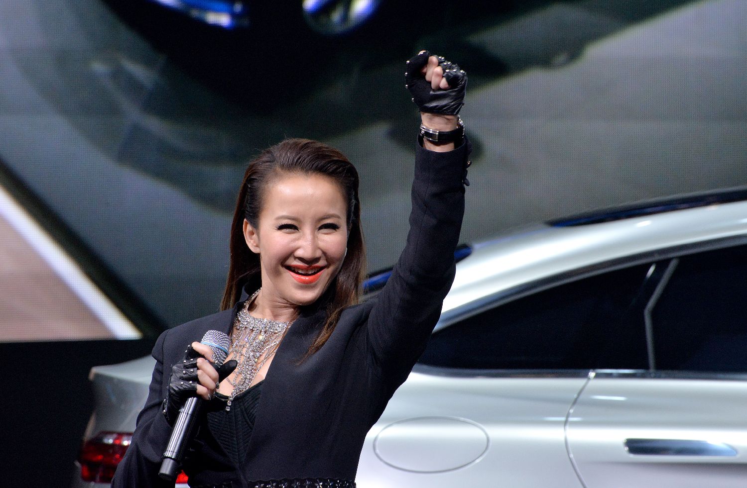 ▲2014年4月20日,李玟在北京国际车展上献唱。(图片来自中新社)