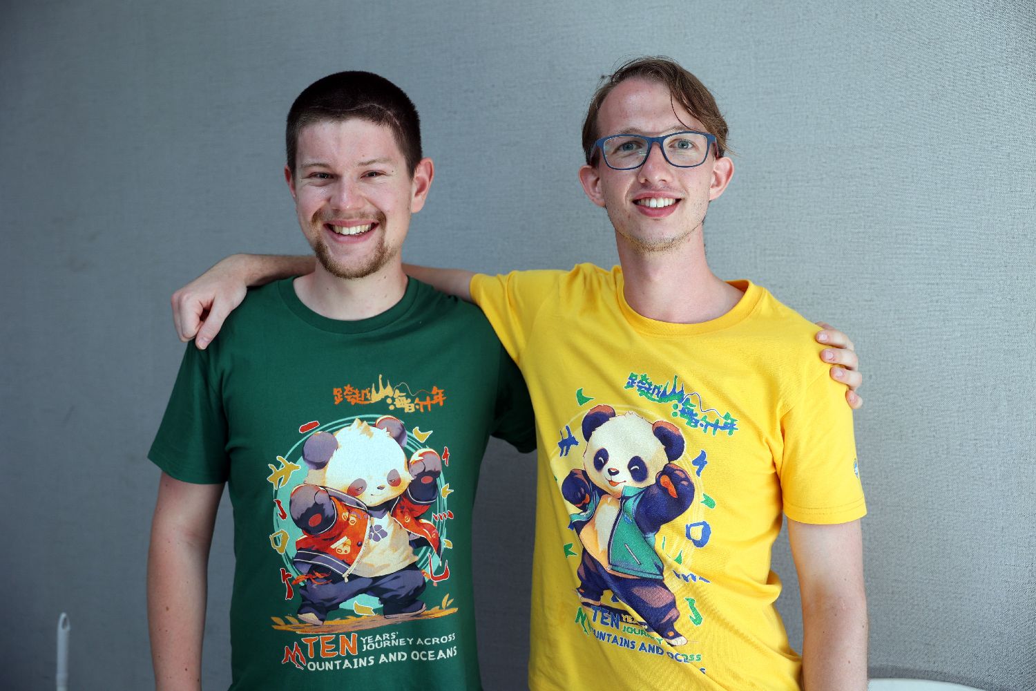 ▲2023年8月18日,新西兰小伙艾萨克·威尔逊(Izaac Wilson、左)和希腊小伙汉森(Henson Alexander Constantine)在活动现场。