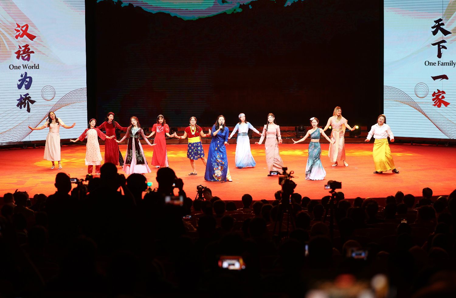 ▲2023年8月18日,来自世界各地的学生在活动现场进行歌舞表演。