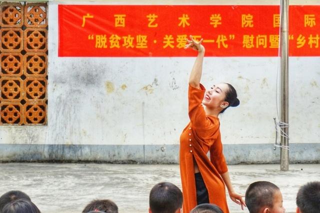 对于武明英来说,广西就是她的第二故乡。在广西留学期间,她还多次以文化交流的方式参与中国乡村振兴的实践。2019年,武明英曾跟随广西艺术学院国际教育学院“别样美”艺术团走入广西百色市德保县甘必村仁爱小学,为师生和村民们带来了一场精彩的演出。