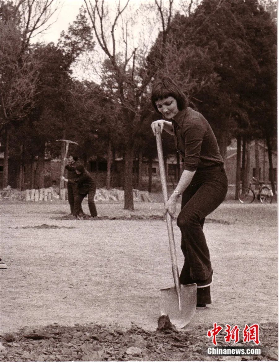 ▲1974年,罗梅君在当时的北京语言学院校园参加志愿工作。受访者供图