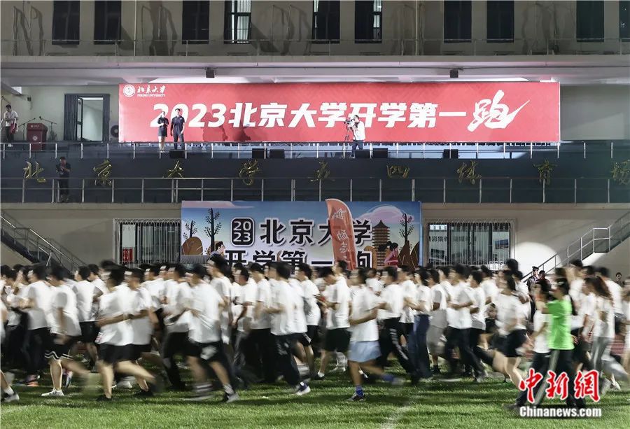 ▲2023年9月3日晚,北京大学举办开学季和新生教育经典项目——“新生第一跑”活动,约有4000名新生共同开跑。易海菲 摄