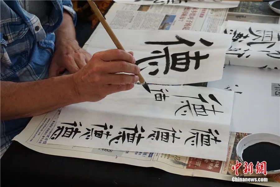 ▲学员体验柏林自由大学孔子学院举办的书法课程。受访者供图