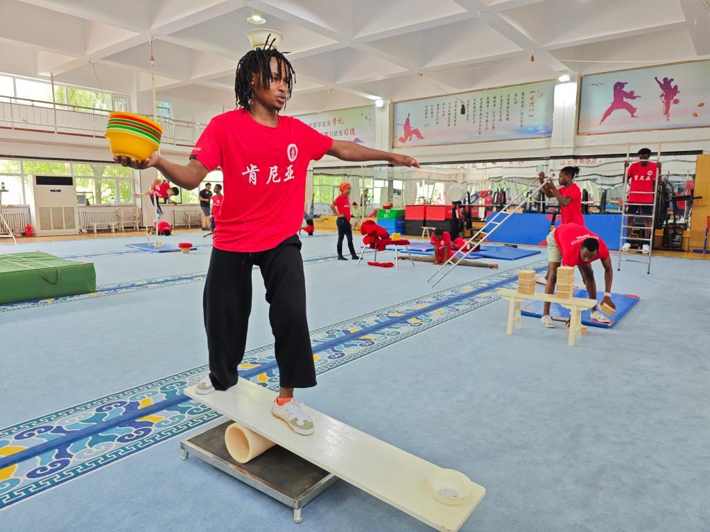 25岁的尤达·帕特里克是卡维塔的另一位学生,他正兴奋地展示近期在中国学到的新技能。“在非洲,我们一般只训练身体的平衡。但在中国训练后,我有了更多想法、更多经验。我很高兴、很感激能来到中国。”他说,“当我学到更多技能后,我就能在国外找到演出机会。”