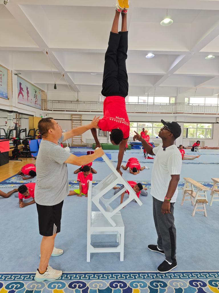 在享誉世界的杂技之乡河北省吴桥县,53岁的肯尼亚人马蒂亚斯·卡维塔正在协助中国教练帮助非洲学员练习杂技。这是卡维塔第二次来中国。41年前他曾来华学习杂技。