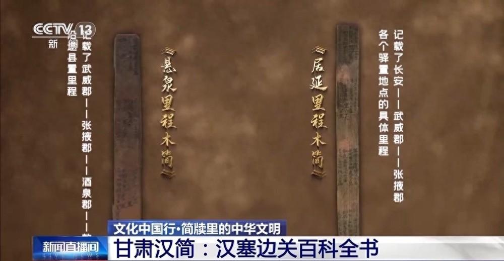 总台央视记者张芸:这里保存着两枚国宝级的里程木简,第一枚是出土于居延的里程木简,我们可以看到它上面记录了从长安到氐池的共20个驿置地点具体的里程道次;第二枚木简是出土于悬泉置的里程木简,它记录的是从苍松到渊泉,一共14个驿置地点具体的里程道次。这两枚里程简合在一起,就是举世闻名大家熟知的古丝绸之路东段路线。