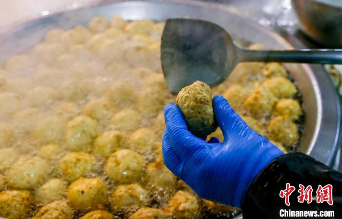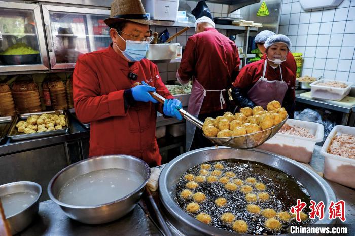 ▲1月17日,湖北武汉,从业30余年的老师傅贺祖茂正在炸圆子。(图片来自中新网)