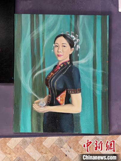 ▲俄罗斯青年画家萨莎创作的画作《黎族姑娘》。受访者供图